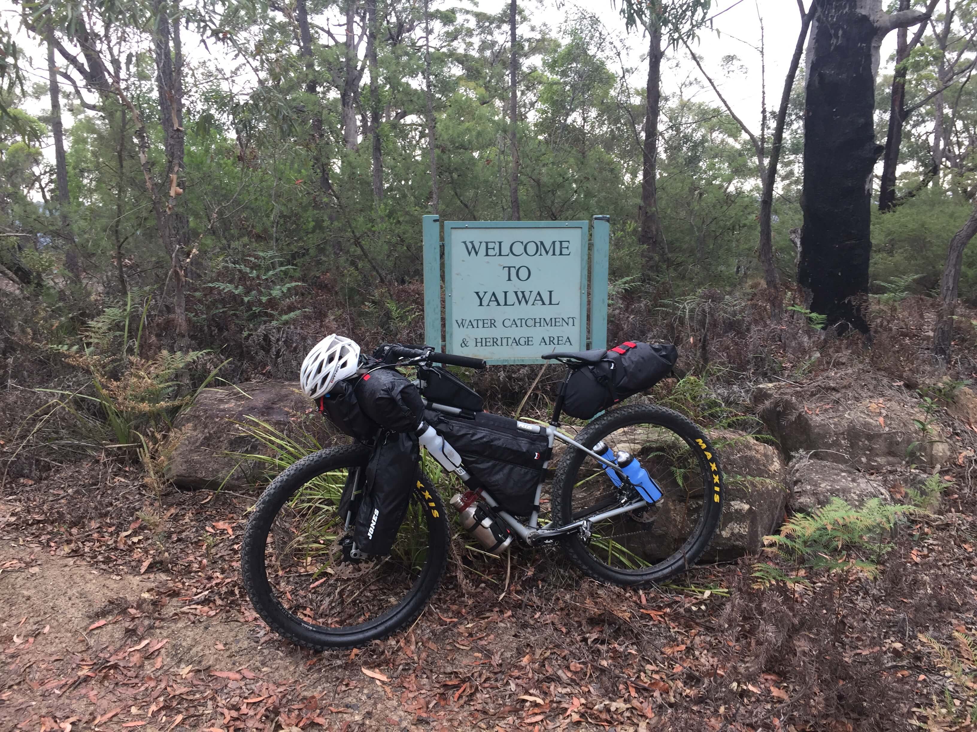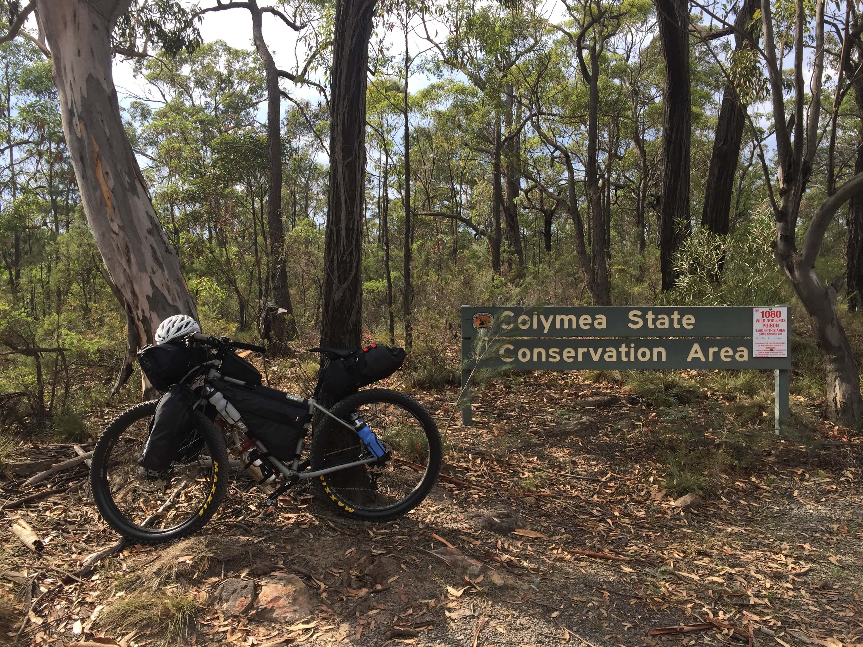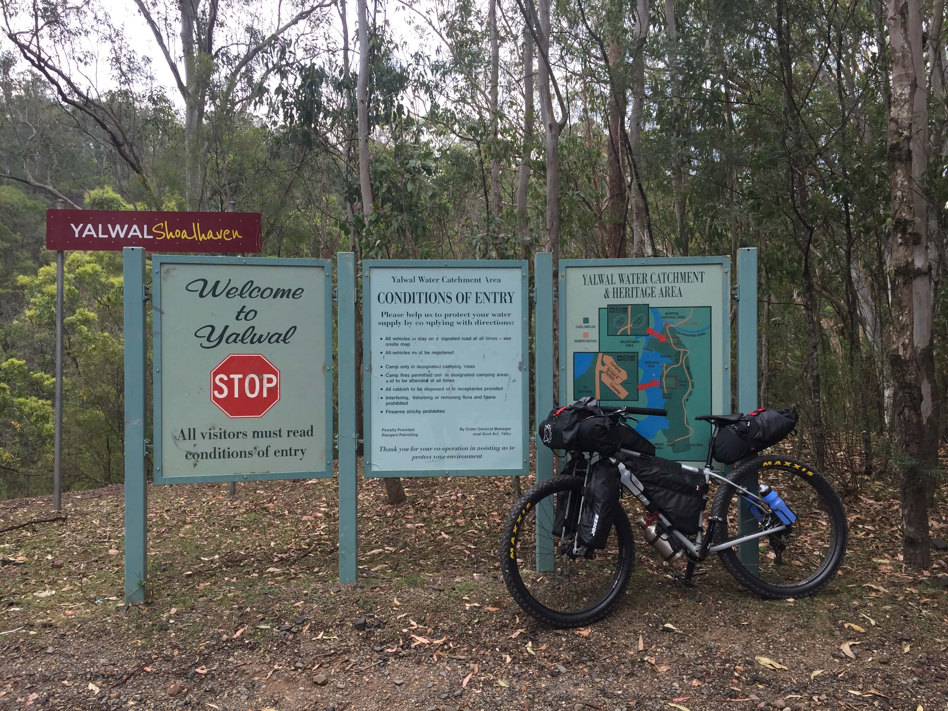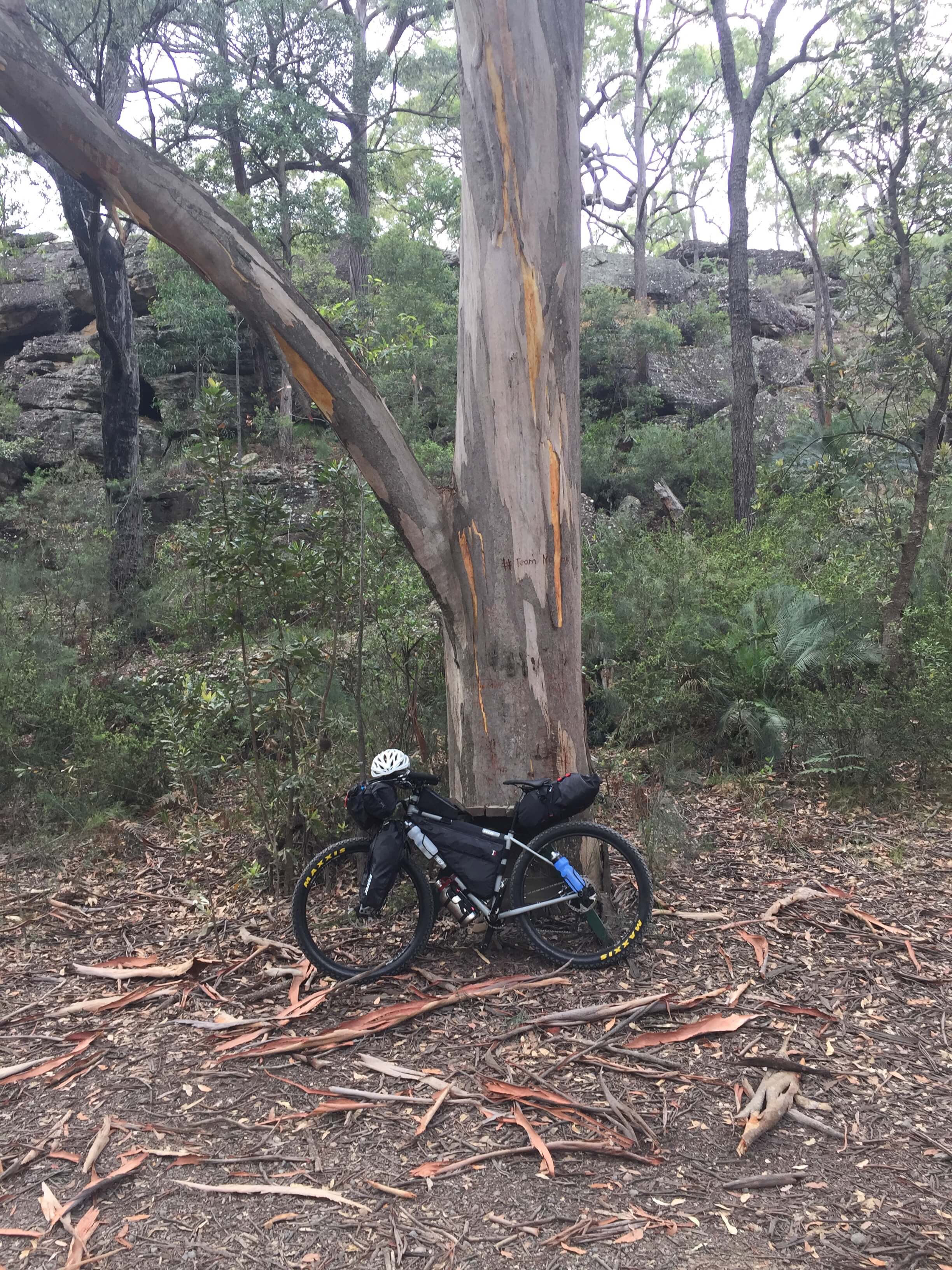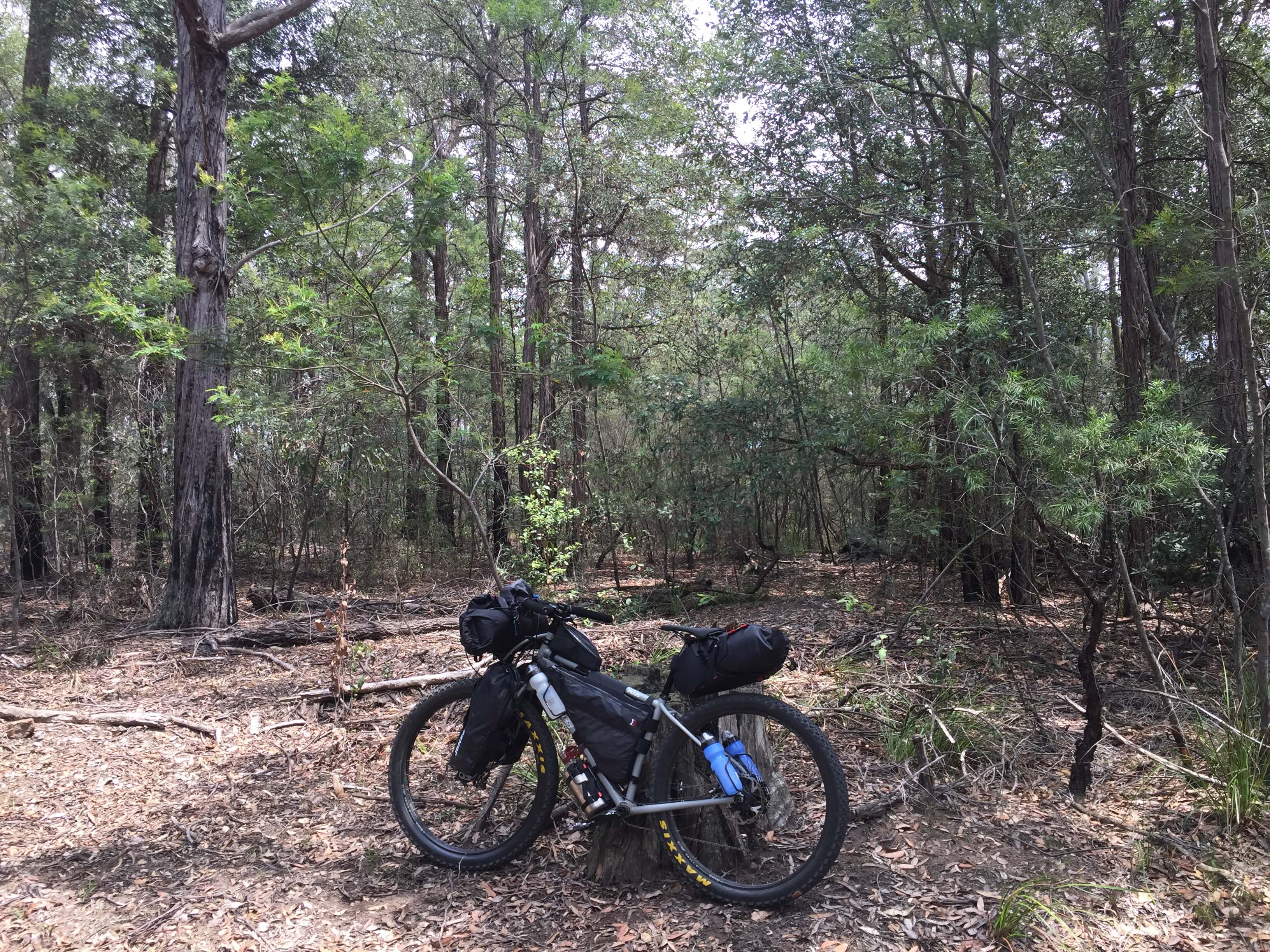 After having a few shorter rides out on the Attack of the Buns bikepacking route, both north and south of Nowra, I loaded up for a ride in Wandandian country, through Yalwal to Sassafras. It was a warm day, and I was soon to experience what grades in the order of 23% on loose sandy fire trails are like.