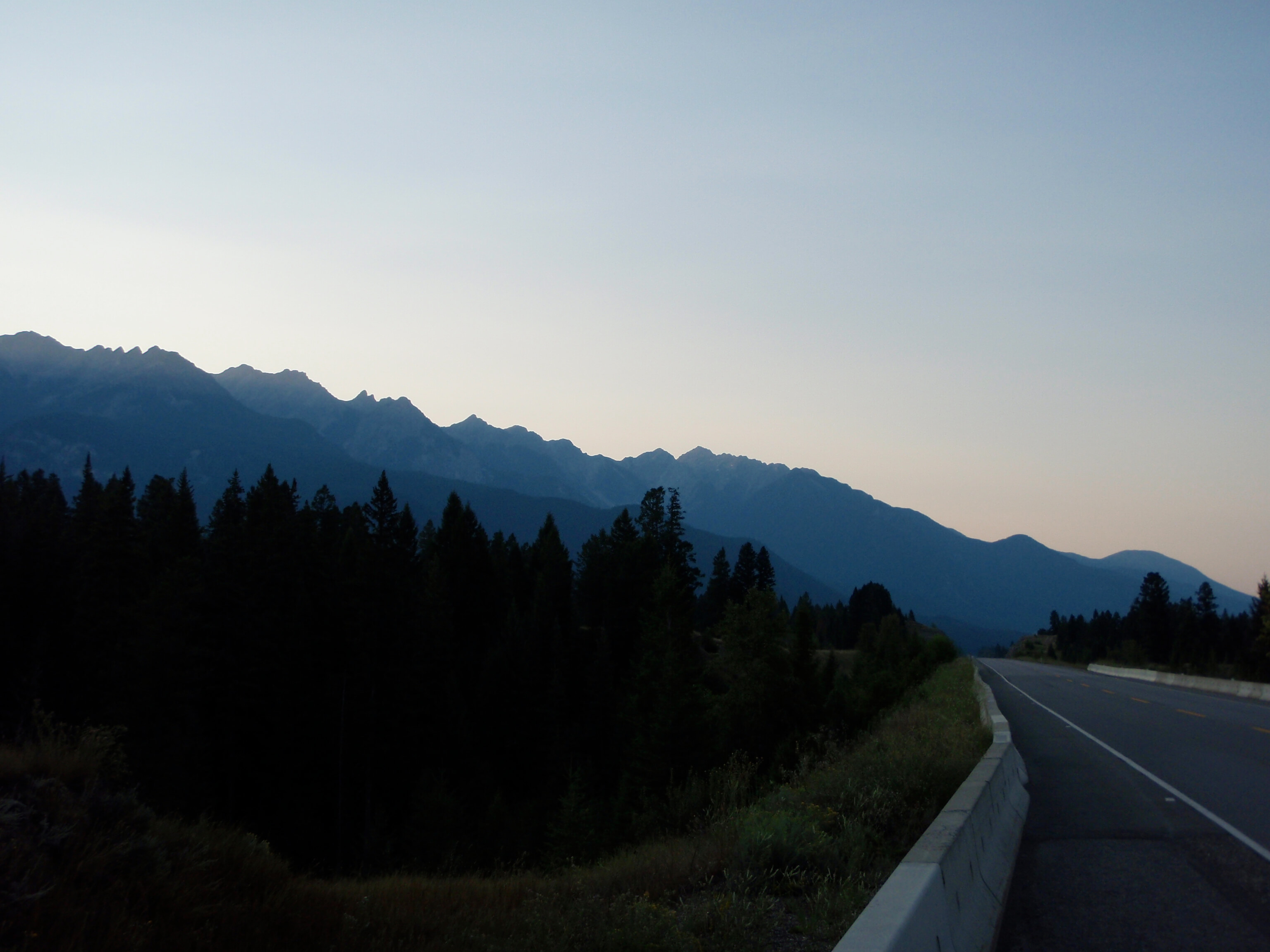 The 2hr+ from the lookout to Kootenay Park Lodge/Vermillion Crossing (104km from Fairmont, arriving around 3pm) was a long and mentally draining stretch. This was partly due to the heat of the day, and this being my 9th day of riding, not having stopped since I left Vancouver. Aside from the spectacular mountain ranges, the sight of a black bear scampering across the road in front of me was a highlight!