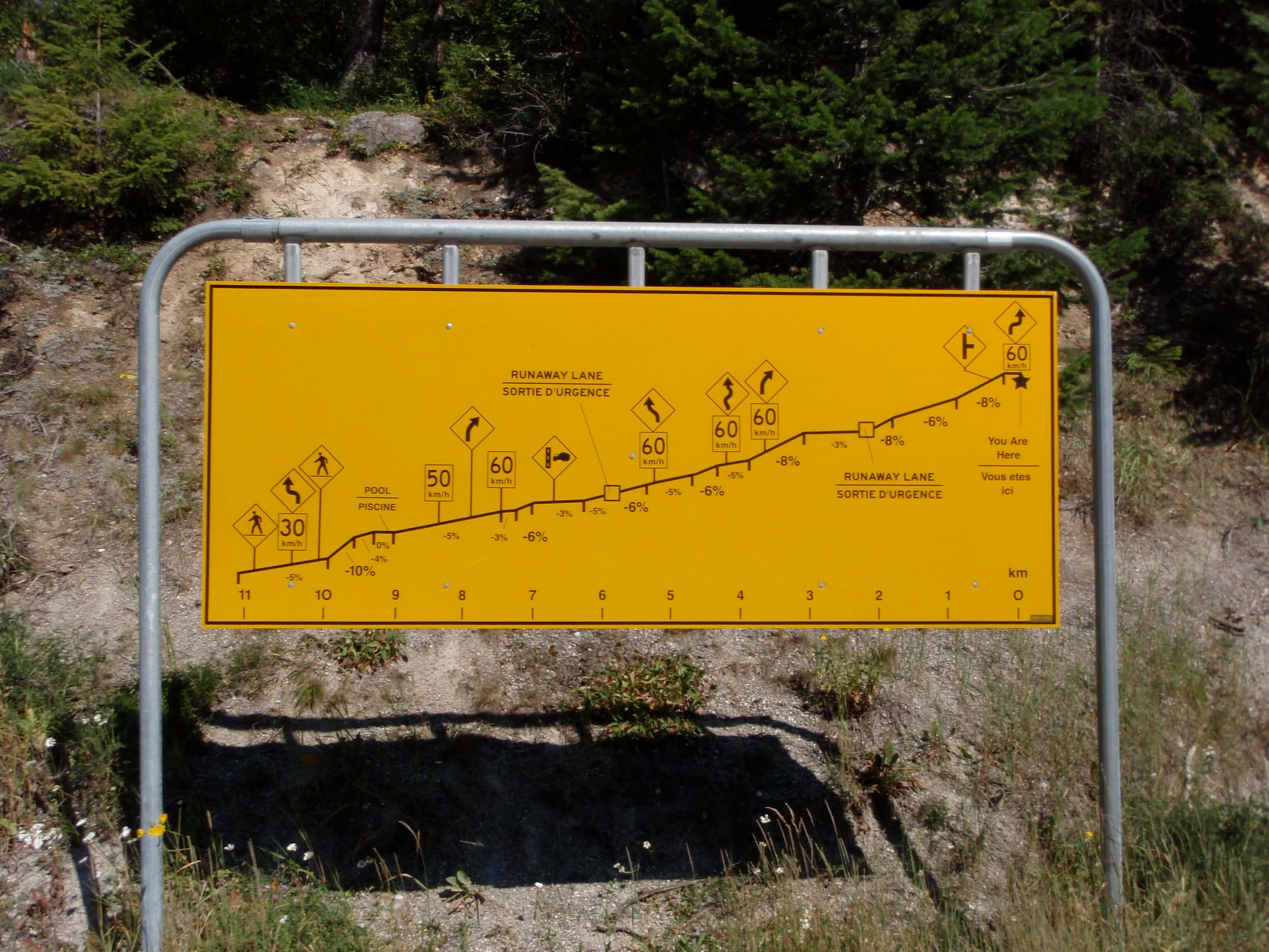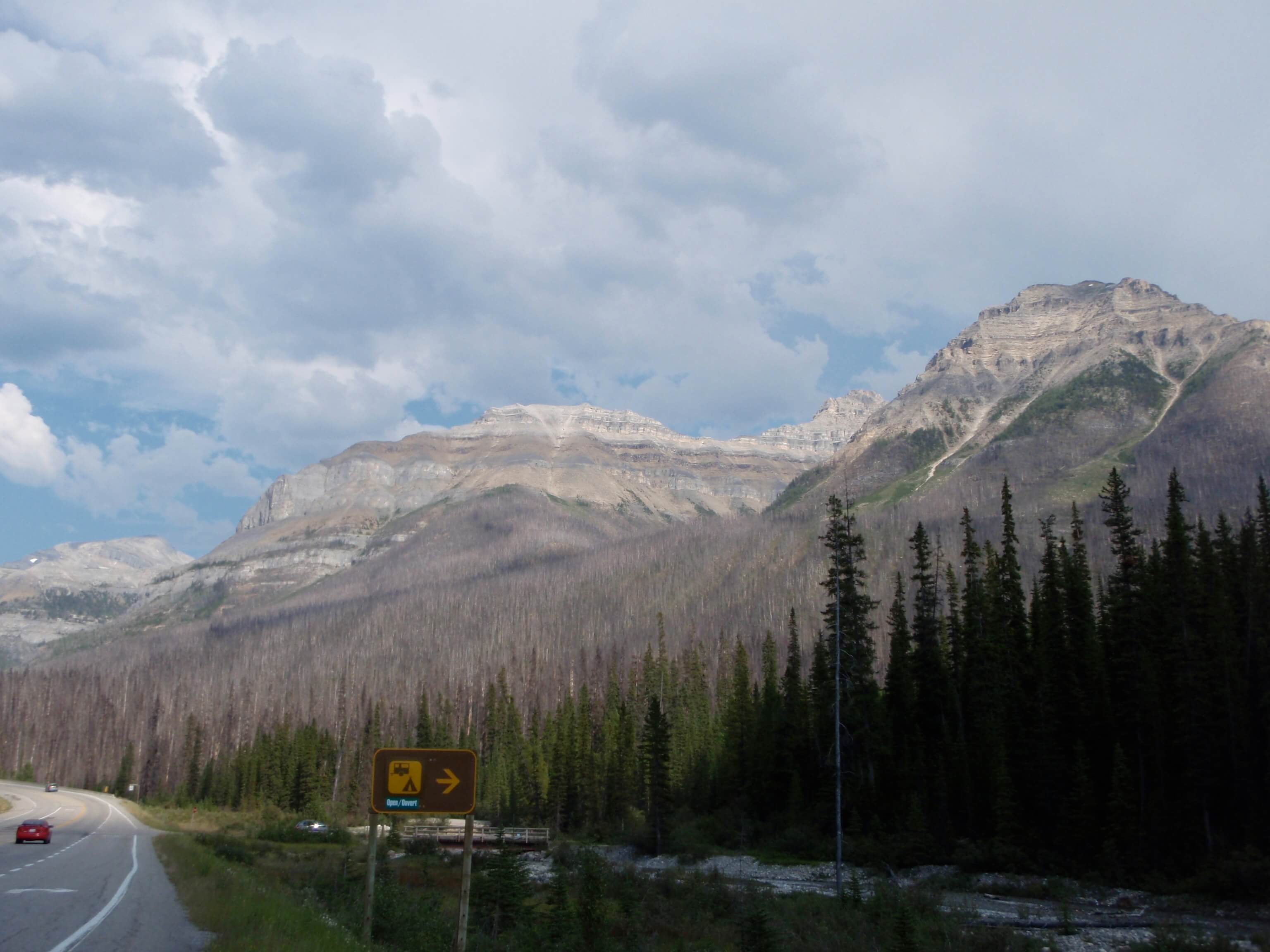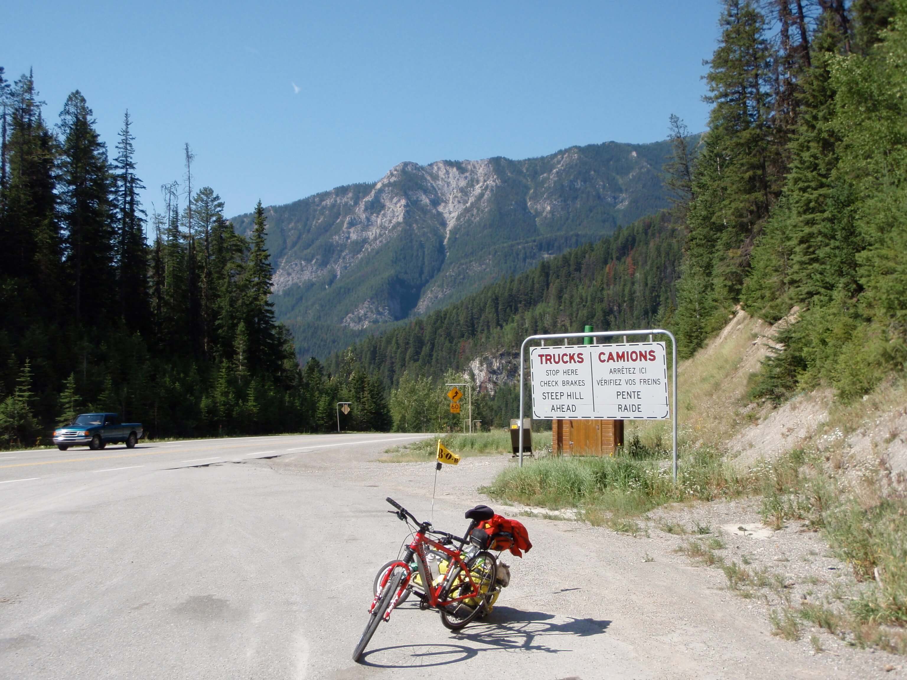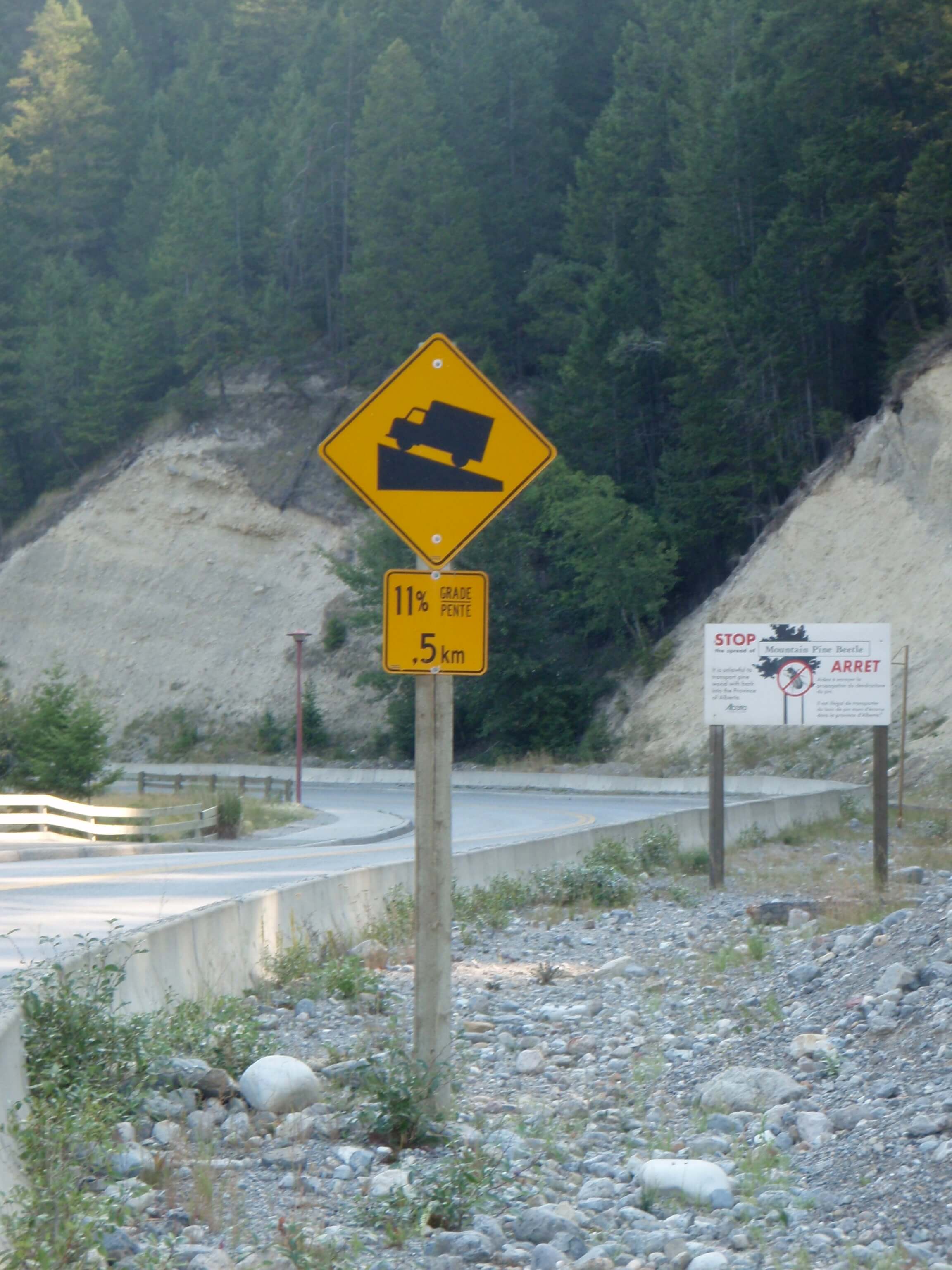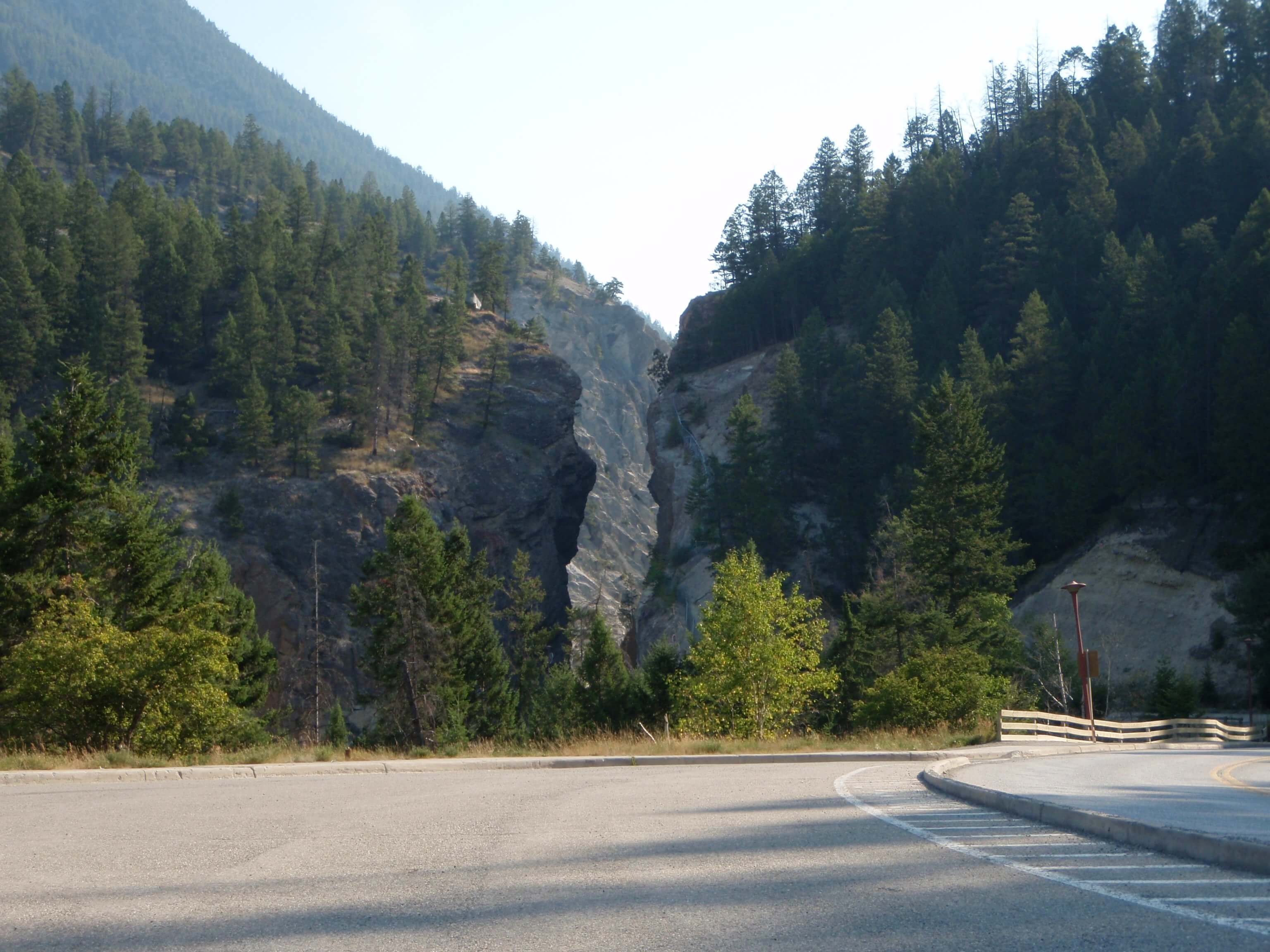I rose and packed camp early in anticipation of another hot day, hoping to get past the anticipated steep and challenging climb out of Radium Hot Springs. I was on the bike by 7:15. The ride to Radium (38km) was uneventful. A short climb, some spectacular scenery, and a early heat provided a indication of what was to come. I stocked up on supplies, not knowing if I would make it to Banff and what services were available prior to Kootenay Park Lodge. The adventures of the day provided many more photo’s than any other day.