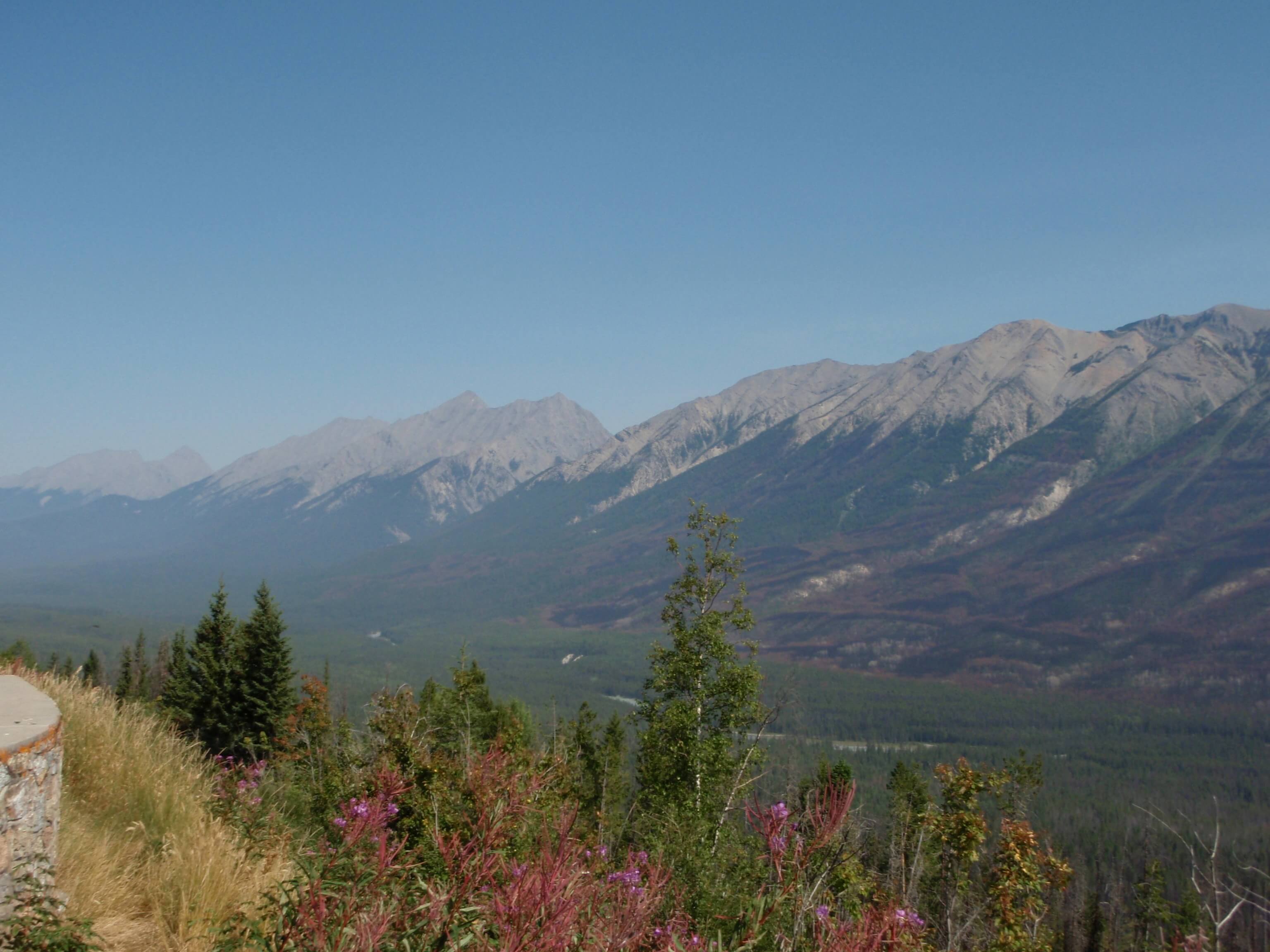 Close to 90 minutes and 11km of riding (and a lot of water) later I had crested the first climb of the day and was closing in on the breathtaking views of the Kootenay National Park and the Mountains to the north-east. This was a tough climb. Traffic was not that heavy on the way up, though it was quite busy when I reached the look-out. The photographs speak for themselves...