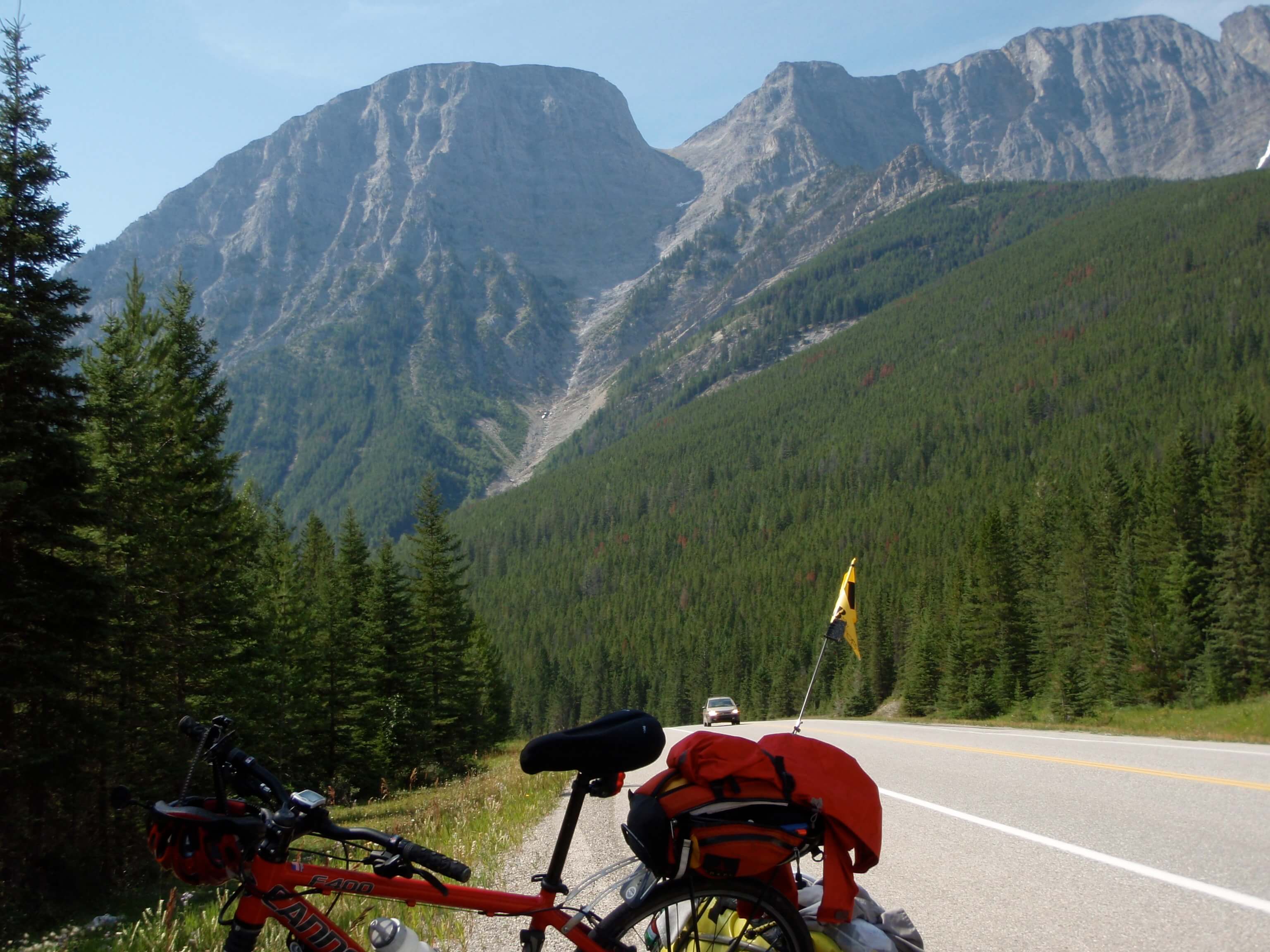 At the lookout, I crossed paths with a couple ‘credit card’ tourers with their own support vehicle. They were on road bikes and carrying no gear whatsoever (I also bumped into a couple on the outskirts of Banff. They were traveling super lite, staying in motels and buying meals — with plans to make Vancouver in 6 days!).