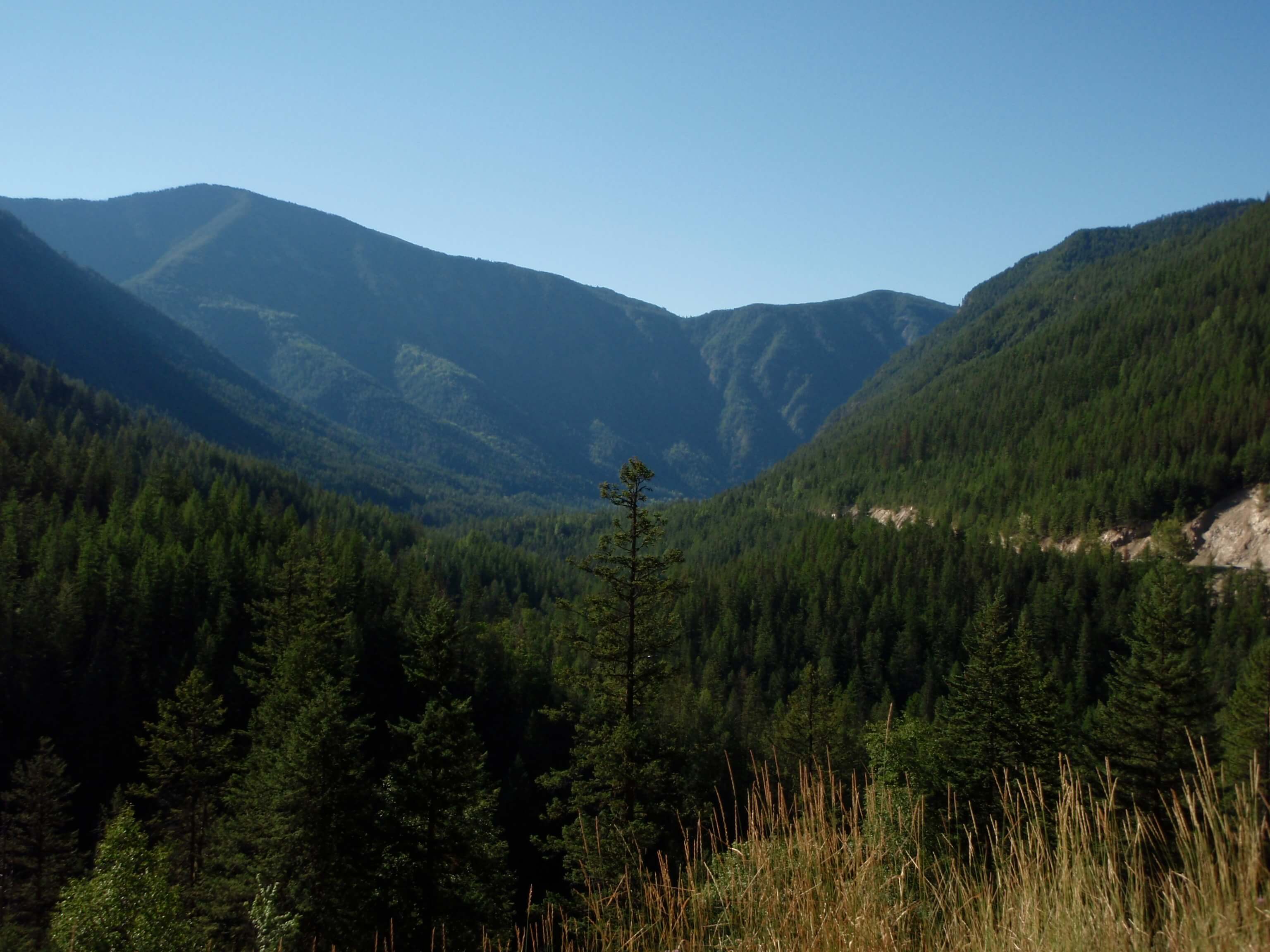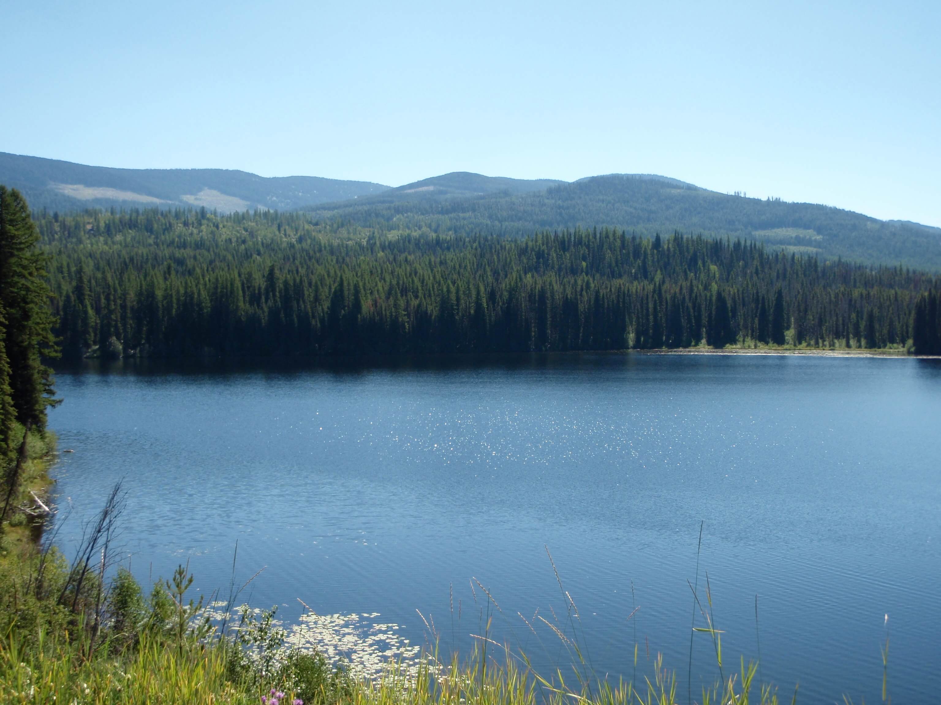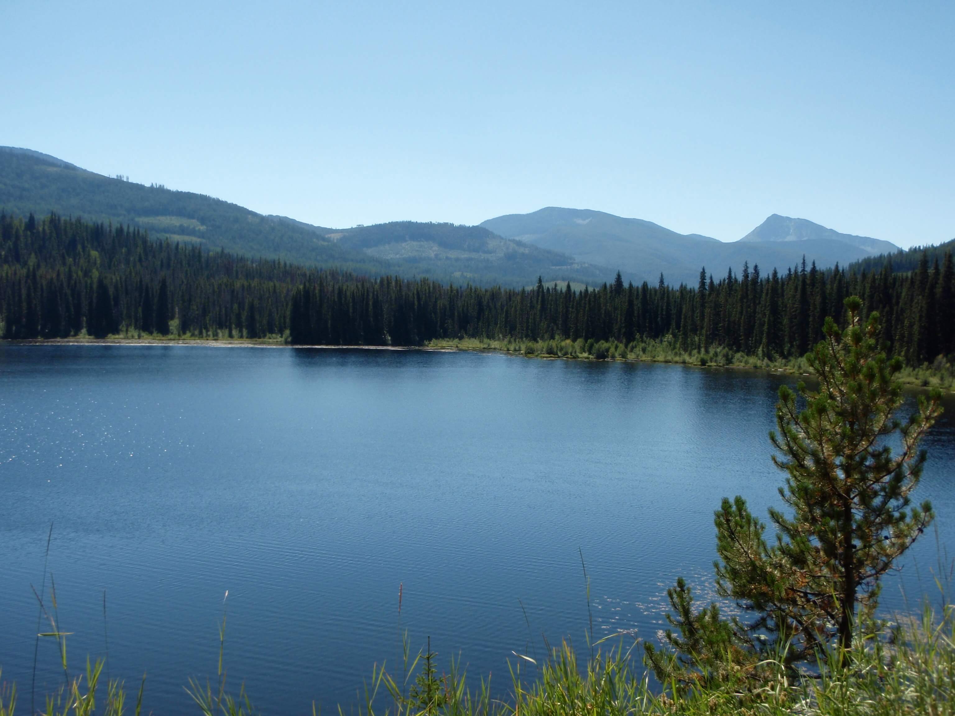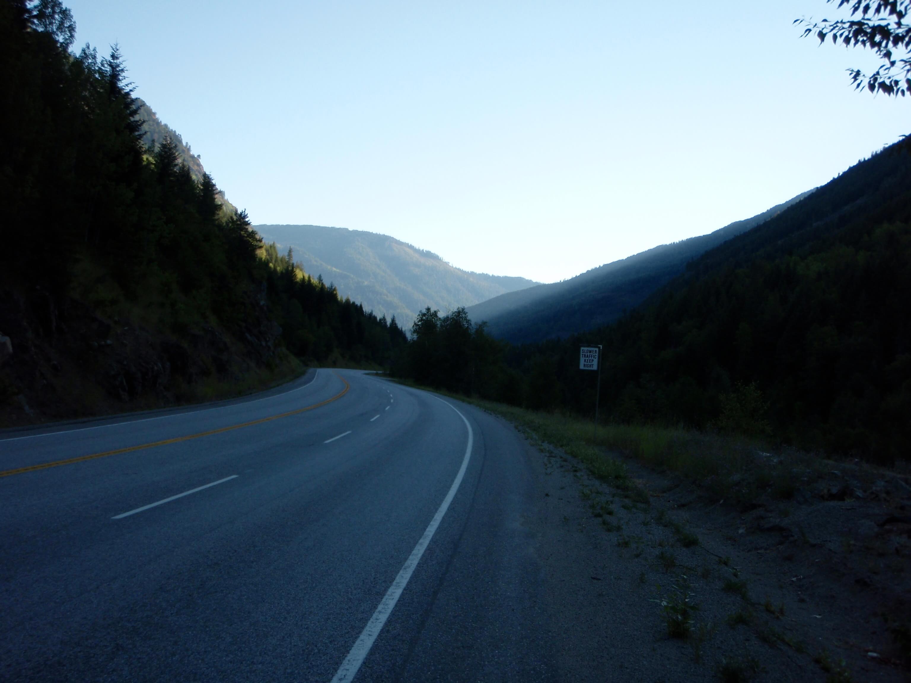 It was a pleasant morning on the lake, rising at 5:45am. The early morning view across Christina Lake was a pleasant way to start the day. After a quick meal I was able to pack my gear and leave Texas Creek Provincial Park by 6:30. Following the 5km back-track to Highway 3, I turned awayfrom the lake and headed north-east towards Paulson Summit.