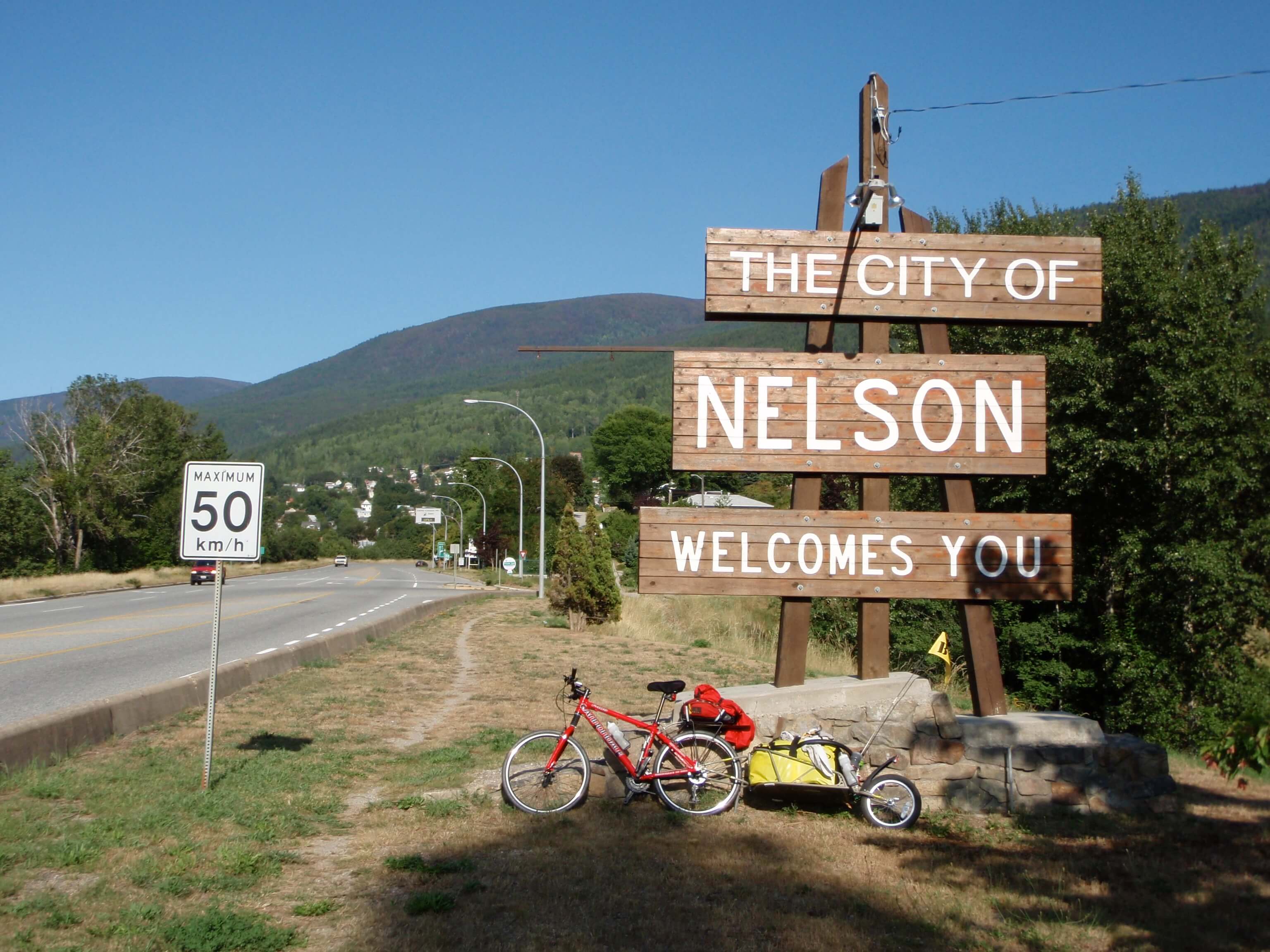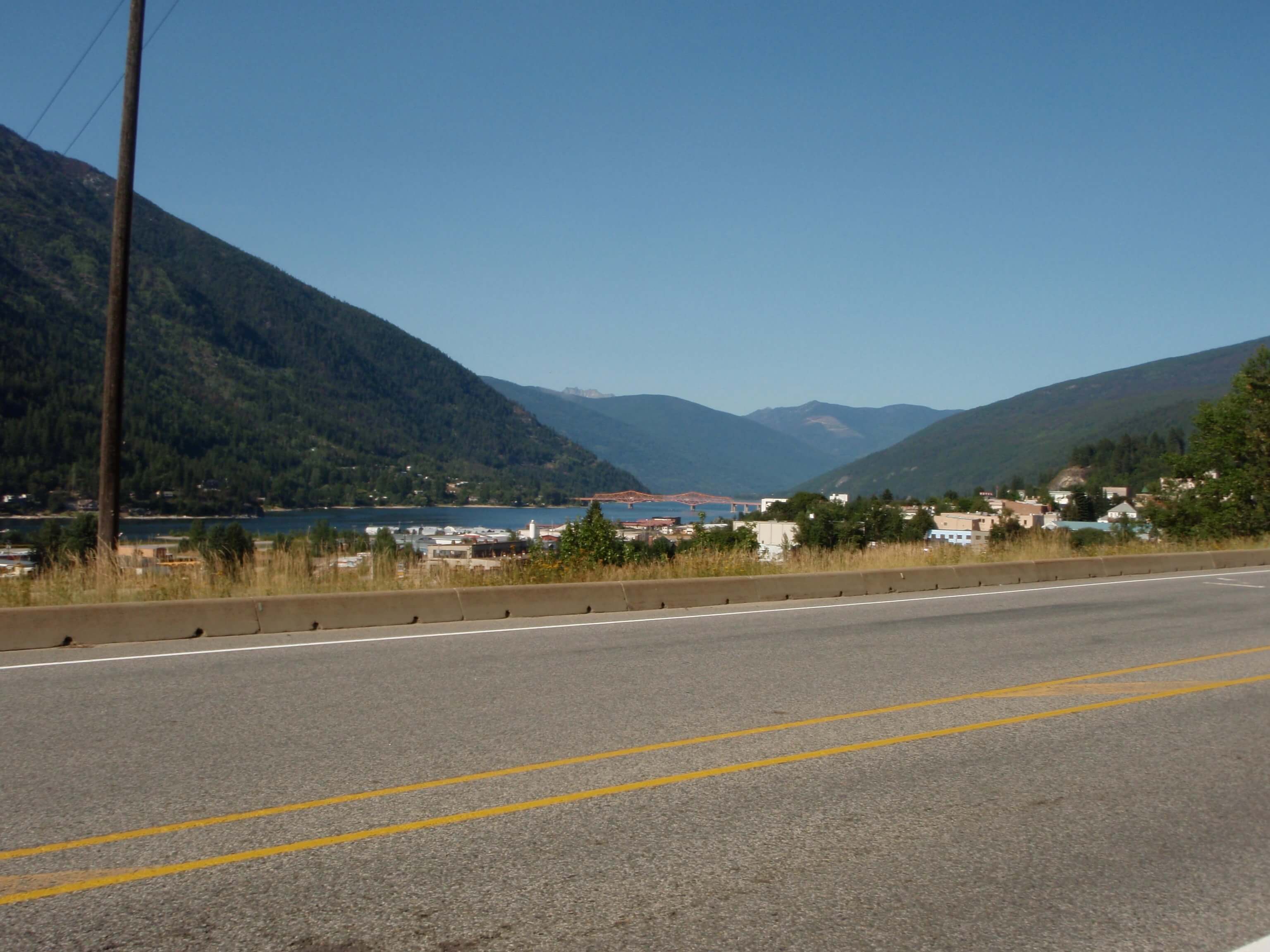 After cresting Paulson Summit, it was a long decent into Castlegar, where I arrived at midday (73km). It was another very hot day, and I escaped some of the heat in the Visitors Centre, before a failed attempt to find some hearty food. Just as I was getting ready to leave Castlegar, I met a women who had completed a trans-Canada ride. Meeting others who had ridden across part of Canada, or who had friends/family who had, was proving a common occurrence. With some of my frustration of not finding decent food subsiding, I pushed on through the heat for Nelson.