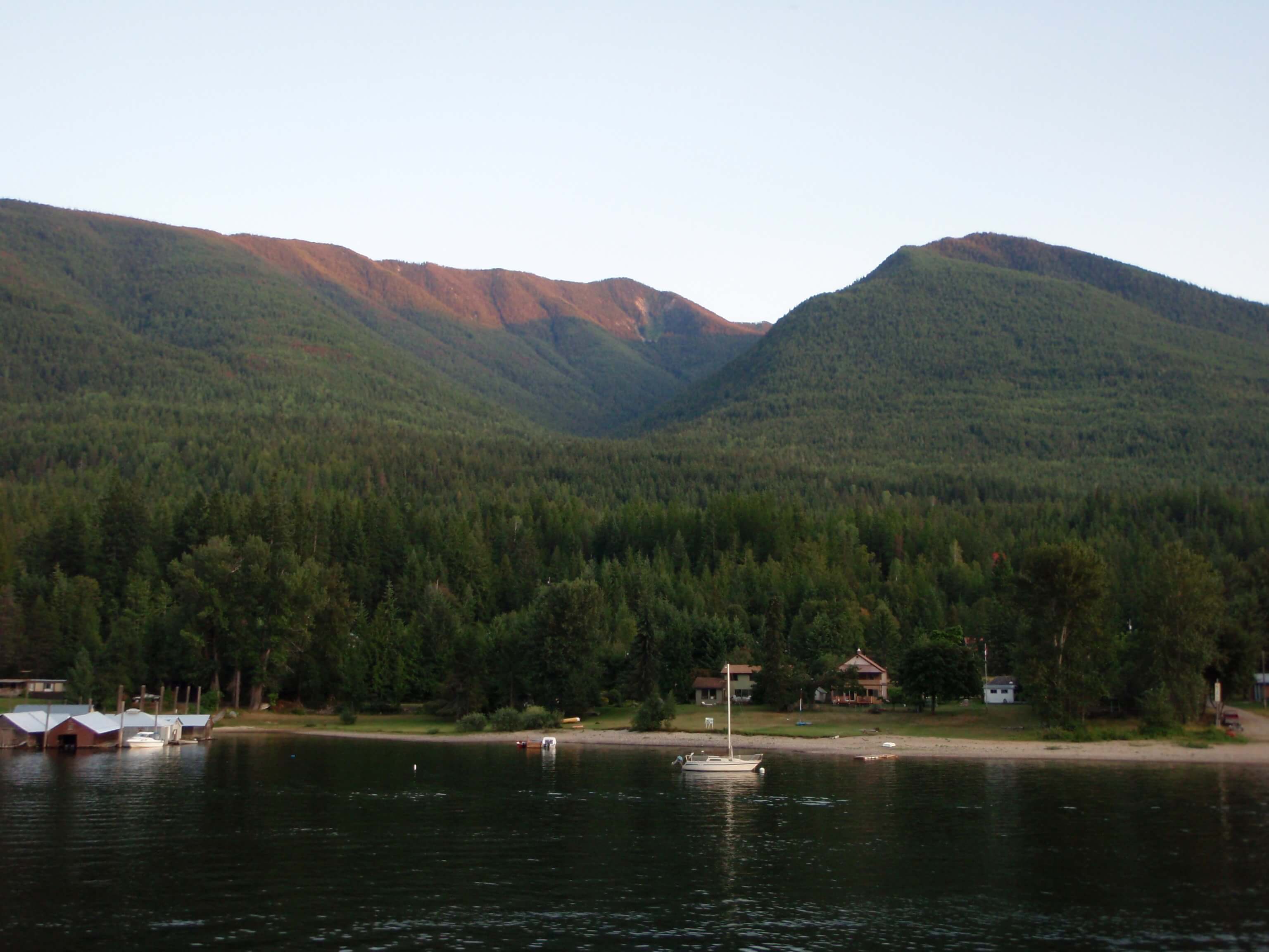 As it turned out, there was still a good 6km to ride from the Kooteny Lake ferry to the first place I could find to camp. I could have set up on the banks of the Lake, though it was quite dark by the time I departed. I stopped at the first place I noted with somewhere to set up my tent. It was a bar and I considered a refreshing ale—first task was to set up my tent and have a shower. Following a shower and my first shave on the trip, I had no desire for anything other than sleep. I hit the hay for some well earned rest.
