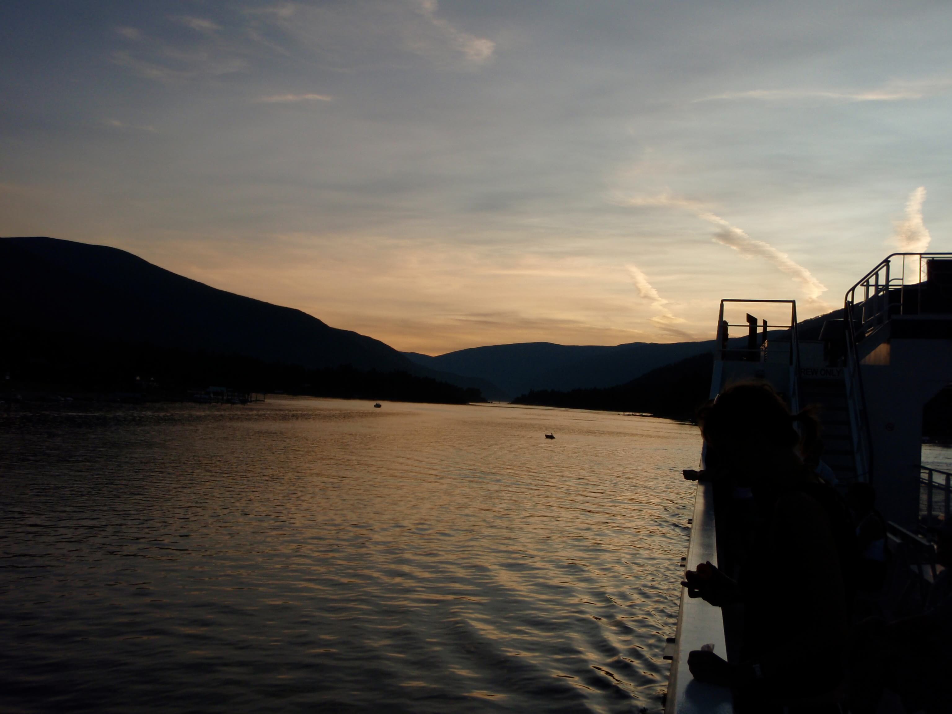 It did not take long for the weariness of several days riding in heat to return—it was 32 degC when I left Nelson. My calculations about the distance to both Kokanee Creek Provincial Park and the Kooteny Lake ferry were off. On closing in on the PP I decided to push on for the ferry. I arrived 5 minutes before it was scheduled to depart and hoping I could find a spot to camp relatively easy and quickly on the other side of the Lake.