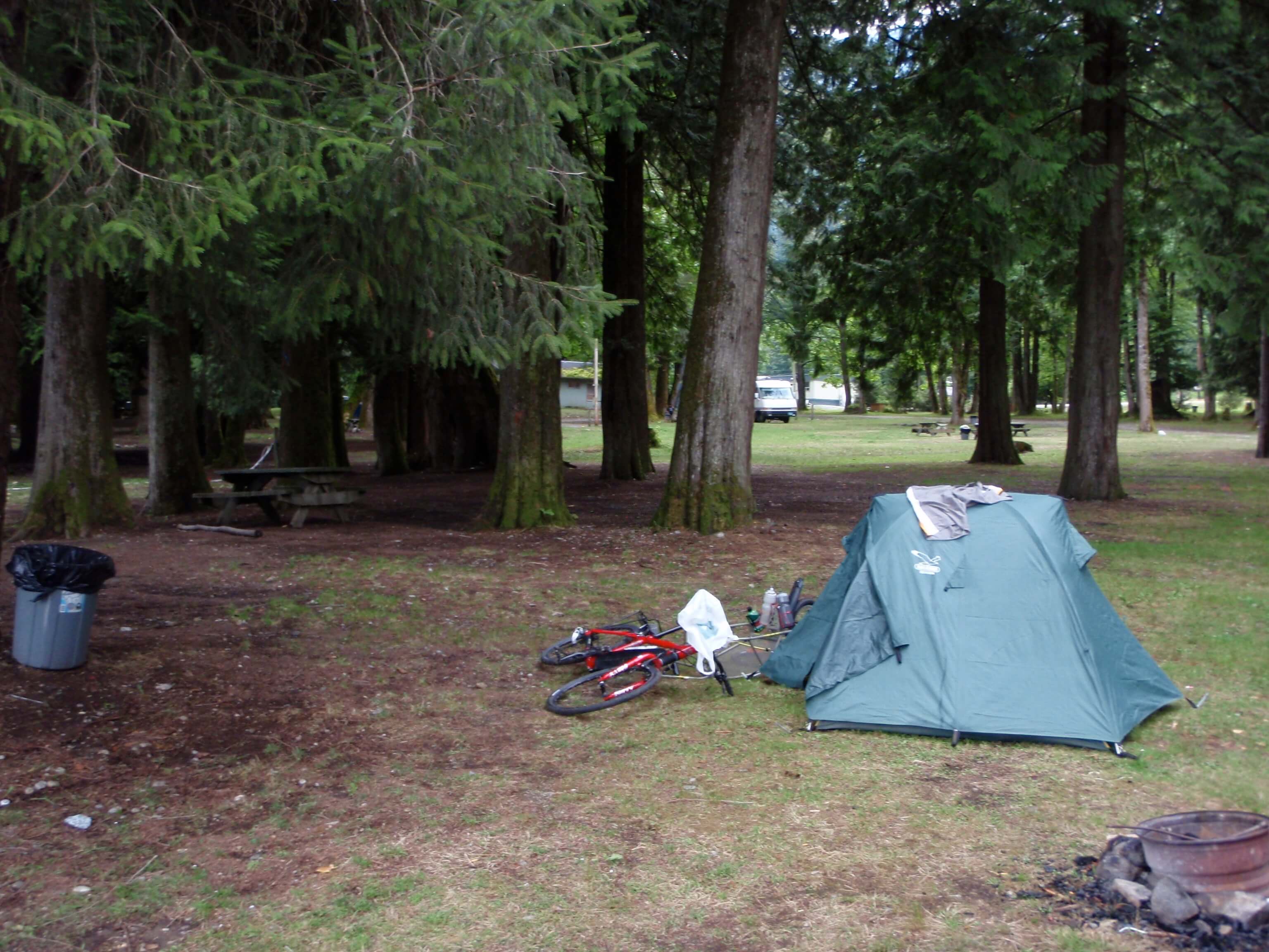Given that I was up until close to 4am the night before, I had a bit of a late start today. I was off and on my bike around 10:30. I was unsure how far I would get, aiming for somewhere between Mission and Hope (interesting town names!). The Fraser Valley is very flat, and I stopped in the late afternoon, not wanting to push too far on my first day, at Squawkum Park.