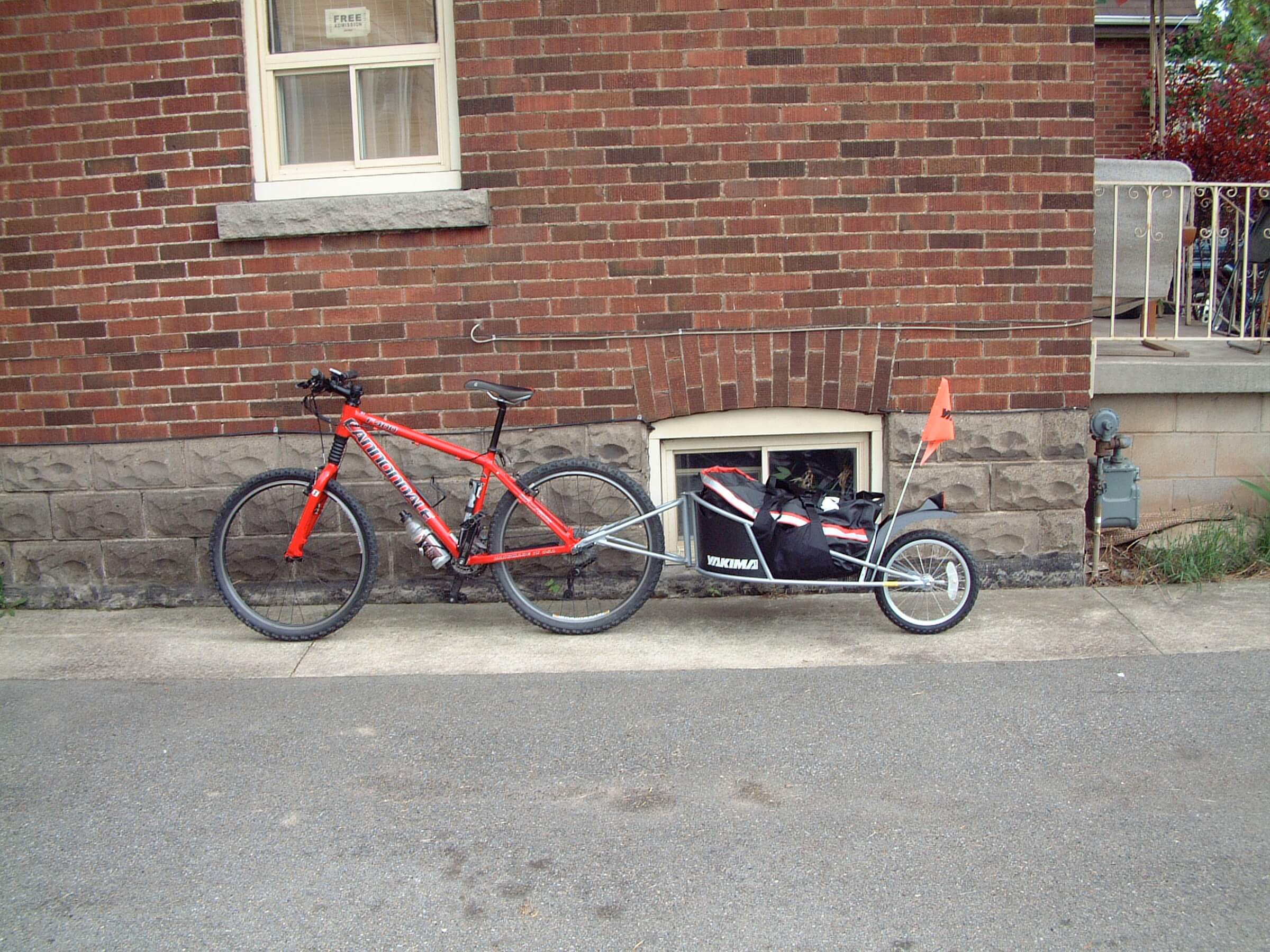 After spending a few hours in my office (to make up for some of the time I will be riding over the next week), I hitched the Yakima Big Tow trailer, loaded it up a went on a short ride of a little over 20km. This was my first time out with it loaded - I hitched it up (empty) yesterday for a trip around the block to see what the feel was like. At first I could notice the extra weight, but not for long. Acceleration was not as quick, and it still had a little bounce (far less than when empty). Once going the momentum was quite good and a good cruising speed was easy enough to obtain. Handling wise, it is somewhat unnoticeable...